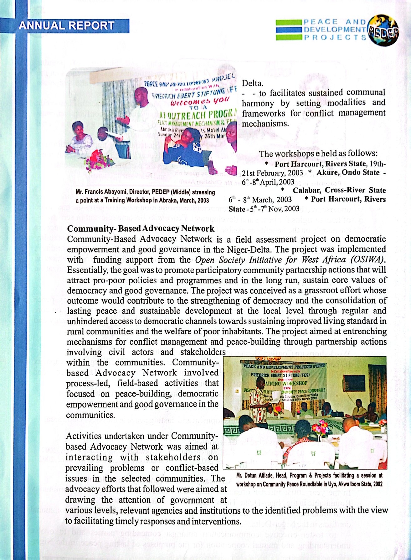 Additionally, she is the Board Chair of the African Womens Active Non- violence Initiatives for Social Change, a continental initiative focused on Women, Peace, and Security. As a foundation member of the Women in Peacebuilding Network (WIPNET), Dr. Akpan-Ita has had the privilege of serving on the Boards of several civil society organizations, including the West Africa Network for Peacebuilding (WANEP-Nigeria), where she served for six years. She is a member of the Institute of Chartered Mediators and Conciliators of Nigeria (ICMC) and was actively involved in the training activities of the Institute.